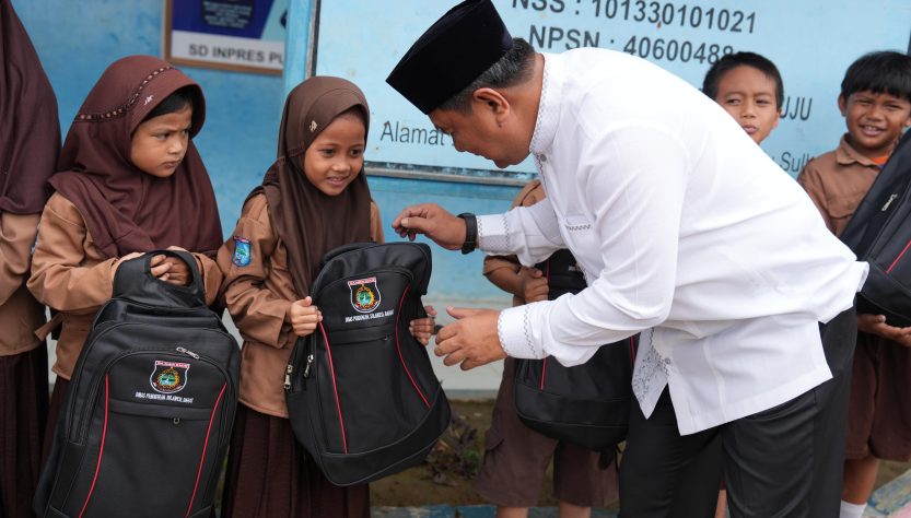 Usai memantau uji coba makan siang bergizi gratis Pemprov Sulbar juga membagikan bantuan tas sekolah bagi siswa-siswi SD Inpres Puncak Mamuju.